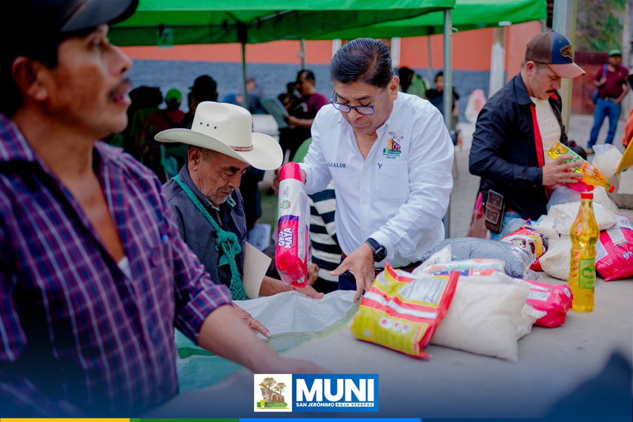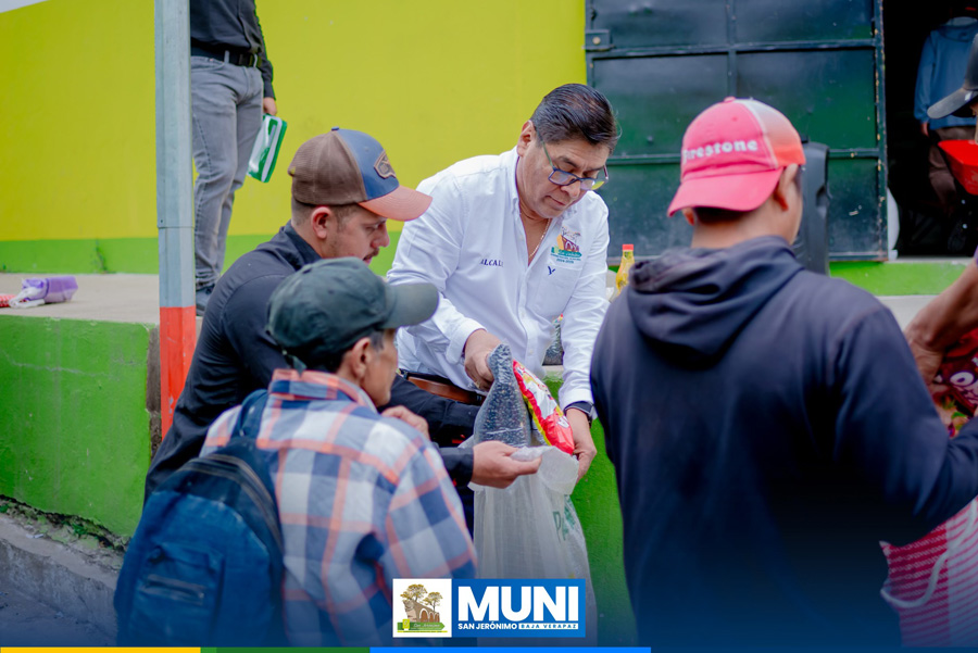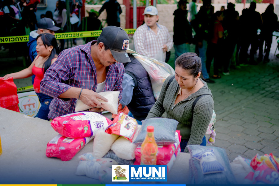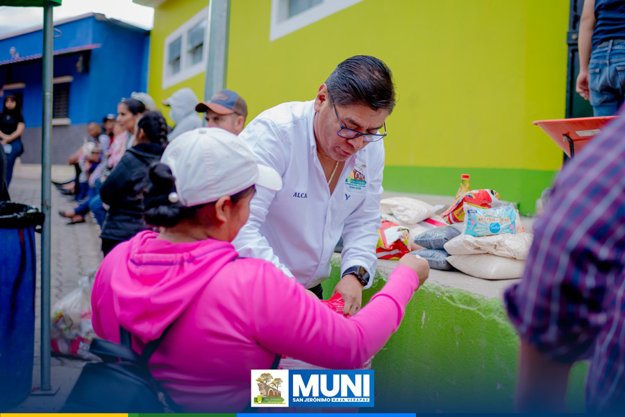 Continuando con la entrega de asistencia alimentaria en el municipio de San Jerónimo, Baja Verapaz, gracias a las gestiones del señor Alcalde Municipal y a la intermediación del señor Diputado de Baja Verapaz, este día se benefició a familias en condición de vulnerabilidad de las siguientes comunidades: