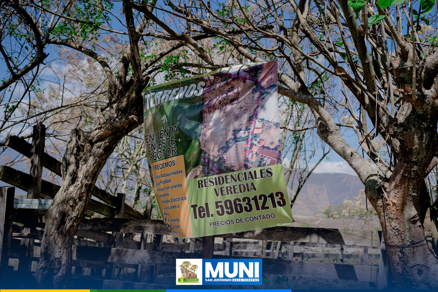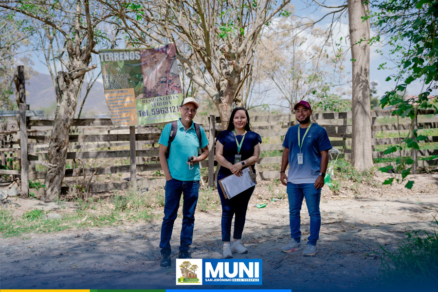 La Municipalidad de San Jerónimo, Baja Verapaz, informa a la población que se realizaron diligencias de inspección y verificación en distintas lotificaciones del municipio, entre ellas: Lotificación El Cruce, Residenciales Veredia, Lotificación Los Achiotes y una lotificación ubicada a un costado de la entrada El Arco.